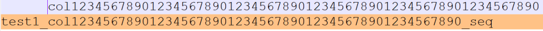 生成的序列名为:test1_col12345678901234567890123456789012345678901234567890_seq,总长也是63。