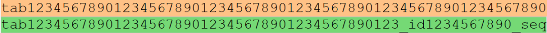 生成的序列名为:tab1234567890123456789012345678901234567890123_id1234567890_seq, 长度仍然为63.