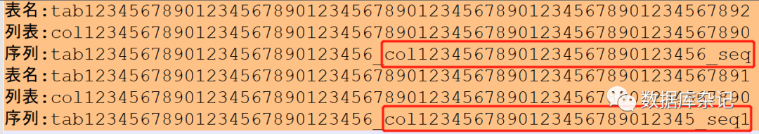 我们看看生成的序列名:tab12345678901234567890123456_col12345678901234567890123456_seq 长度:63