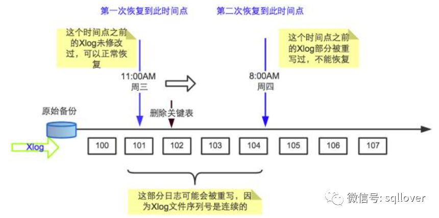 因为它已经从基础备份恢复了一次,时间线也发生改变,并且覆盖了两个时间