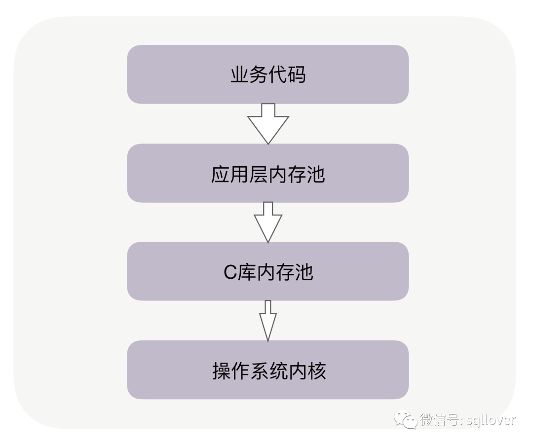 实际上,在你的业务代码与系统内核间,往往有两层内存池容易被忽略,尤其是其中的 C 库内存池。