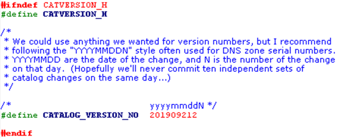 source path:C:\SAPDevelop\3rdpart\postgres\postgres\src\include\catalog\catversion.h#ifndef CATVERSION_H#define CATVERSION_H/** We could use anything we wanted for version numbers, but I recommend* following the "YYYYMMDDN" style often used for DNS zone serial numbers.* YYYYMMDD are the date of the change, and N is the number of the change* on that day. (Hopefully we'll never commit ten independent sets of* catalog changes on the same day...)*//* yyyymmddN */#define CATALOG_VERSION_NO 202107181