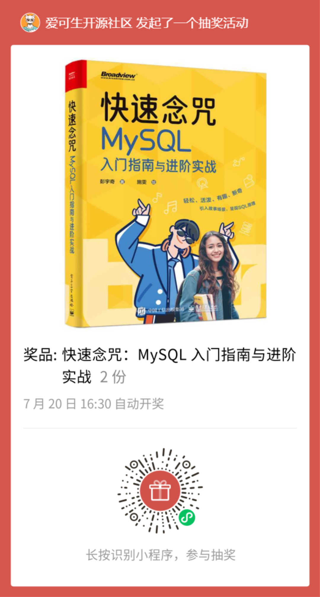关注爱可生开源社区公众号的用户均可参加; 用户可扫描下方活动程序码,参与抽奖;