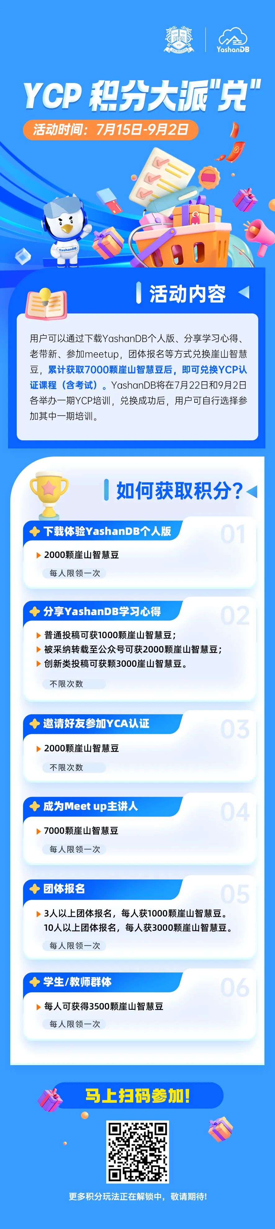 参与方式:在YashanDB官网下载YashanDB个人版,安装部署完成后查询个人DB ID,扫描海报二维码上传截图。