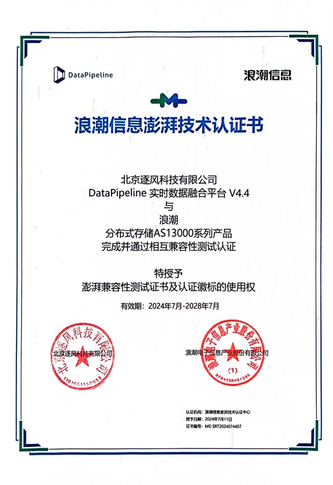 近日,DataPipeline与浪潮云OSS(对象存储服务,Object Storage Service)顺利完成产品兼容性互认证。经过双方联合测试,结果显示DataPipeline实时数据融合平台与浪潮云OSS之间兼容性良好、性能卓越、系统运行稳定,能够顺利部署并提供外部服务。此次成功互认证不仅标志着双方技术合作的深入,更为各行业客户提供了一个更全面、更高效的实时数据管理解决方案,满足数字化转型中对安全和高效数据管理的严格要求。