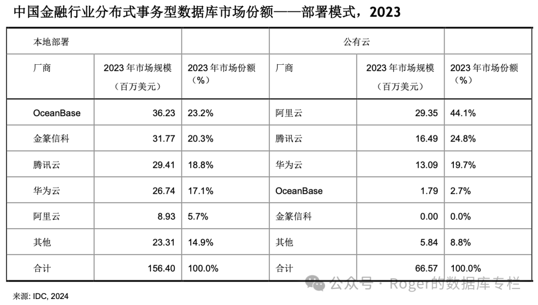 IDC近日发布了《中国金融行业分布式事务型数据库市场份额,2023》,这份报告详细且非常专业的分析了2023年中国金融行业的分布数据库的应用情况,从该报告来看,本地部署市场规模大概是1.6亿美刀。