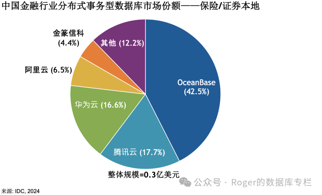 比如该报告中还提到了,在保险/证券行业,2023年中国的关系型数据库市场规模是0.6亿美金,大约是4.5亿RMB,而其中OceanBase 市场占比居然高达了42.5%,这确实让人震惊!