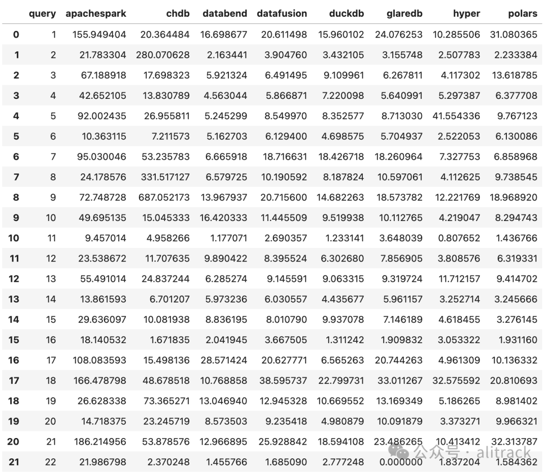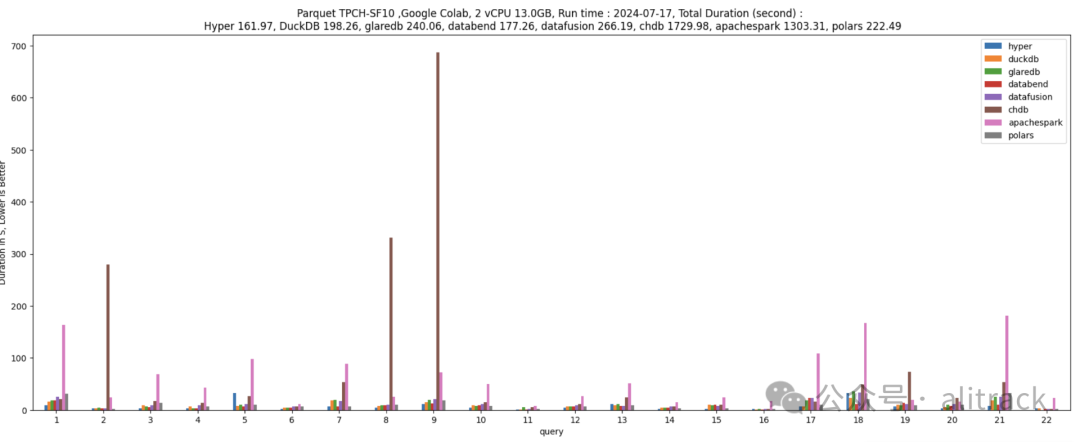 为了方便比较,去掉了两个垫底的:chdb和pyspark