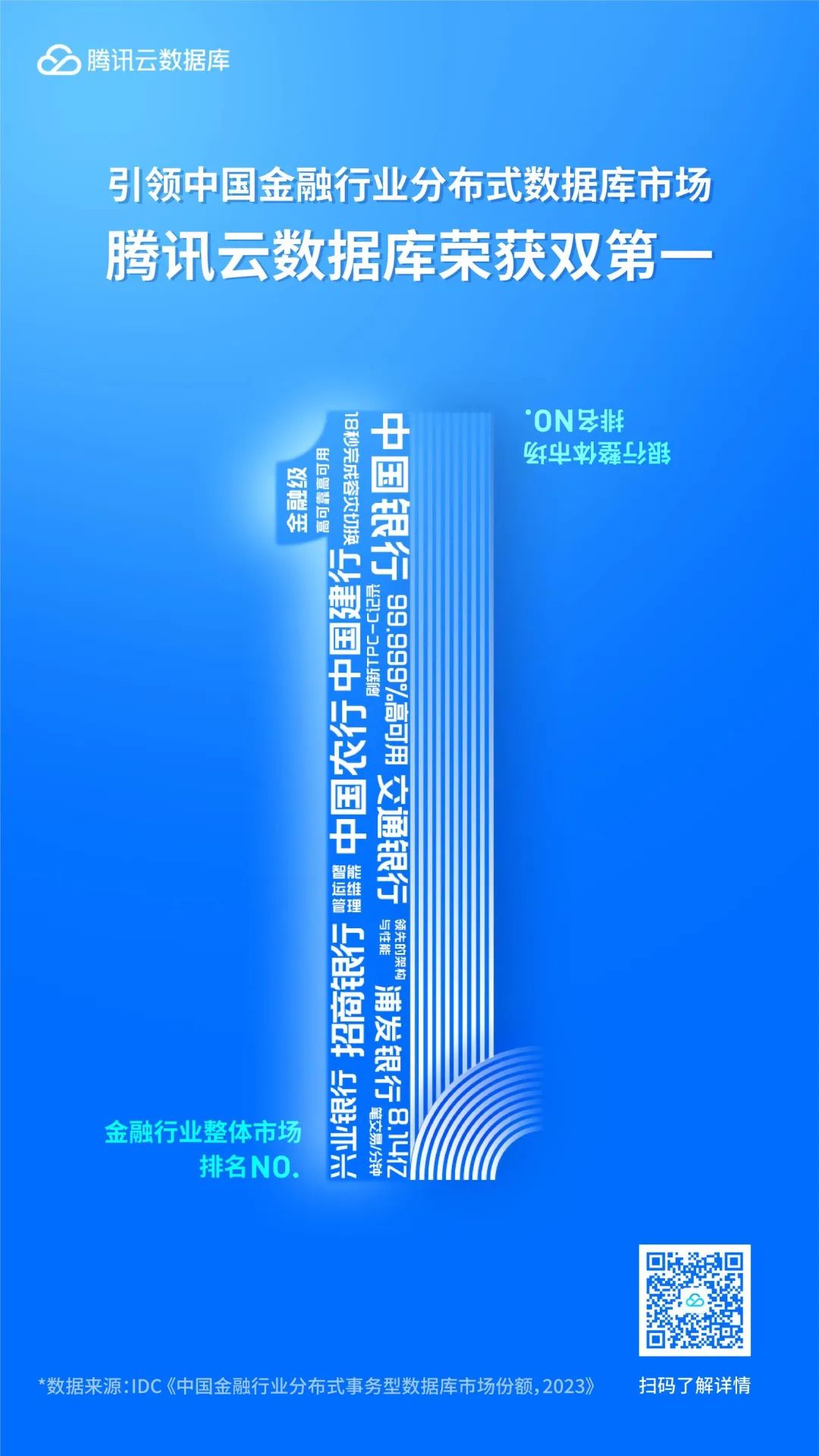 《报告》显示,2023年,腾讯云TDSQL凭借其在金融行业的长期大力投入,以 20.6% 的市场份额斩获中国第一。其中,在银行子市场,TDSQL同样以 21.9% 的市场规模稳居TOP 1,成为金融行业本土化转型的首选。