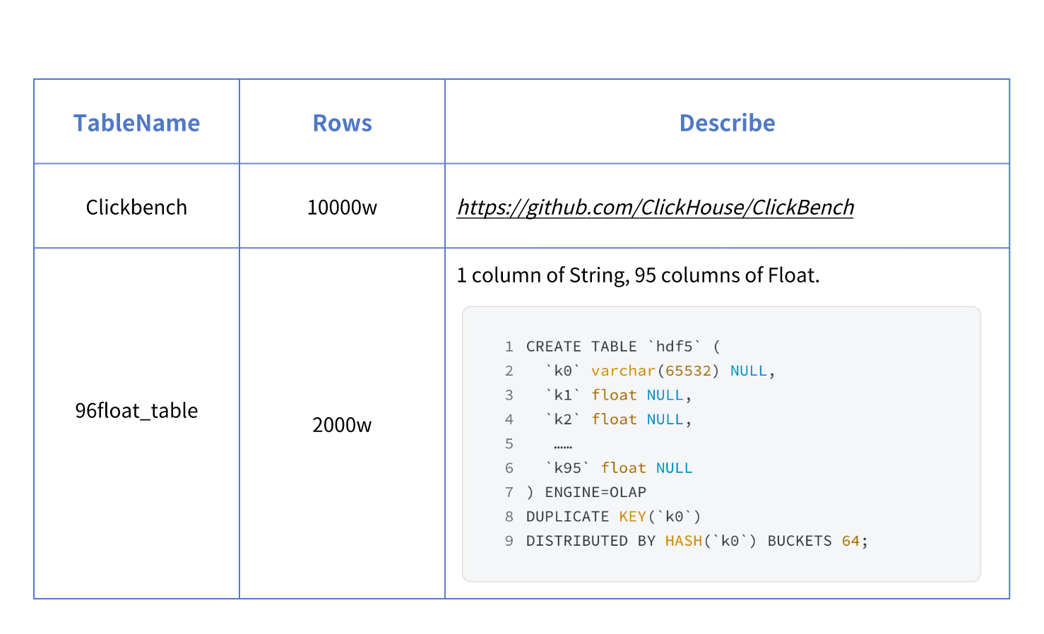 DISTRIBUTED BY HASH(k5) BUCKETS 5