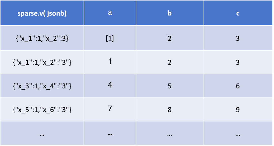 针对 JSON 列特别稀疏的场景, 例如以下数据: