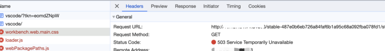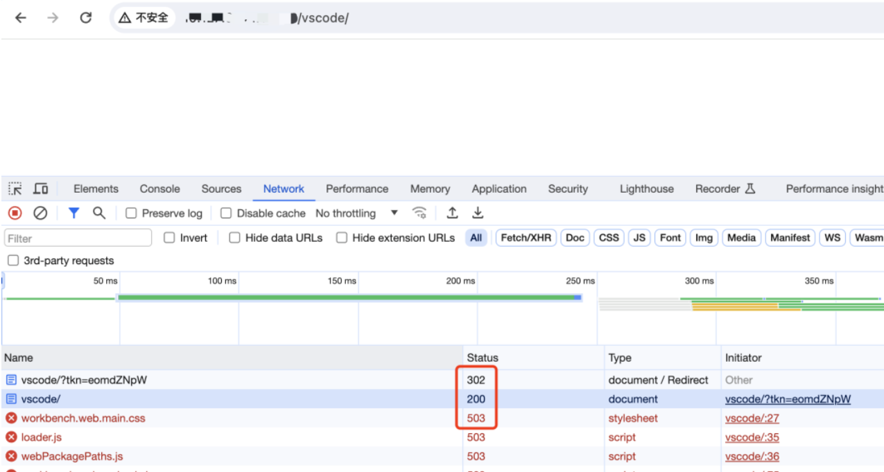 可以看到 302 的下一个请求是 200,问题不大。接着的 503 是什么问题呢?