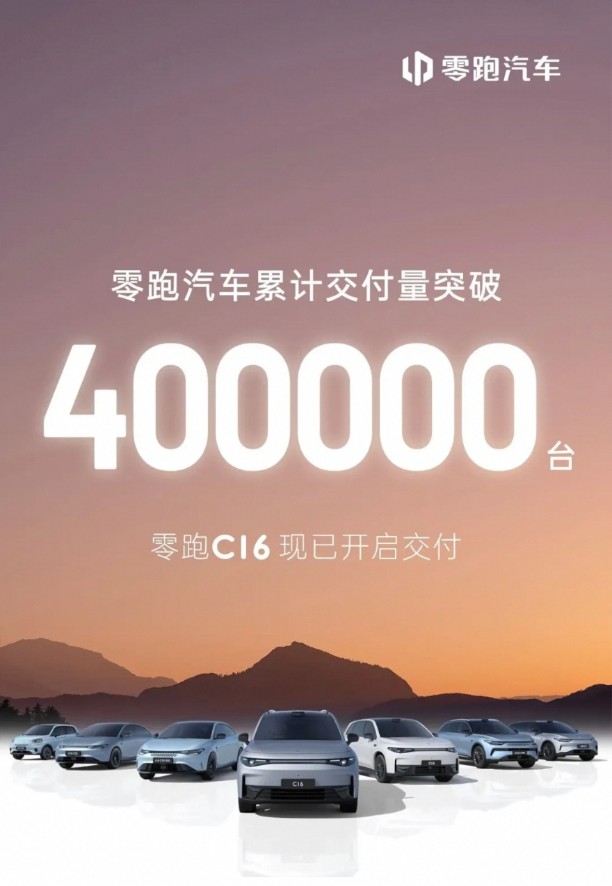 零跑汽车成立于2015年12月,自成立以来已推出零跑C01、零跑C10、零跑C11、零跑C16等主流车型。据统计,今年6月份零跑汽车单月交付20116辆,首度突破2万台创史上新高,而2023年零跑已位列新能源品牌销量前三。近日,零跑汽车宣布累计交付突破40万辆!