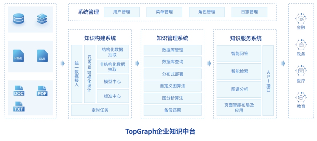 途普智能的核心产品TopGraph,是基于gStore而打造的面向大规模图数据处理的企业级知识中台,同时也是gStore的商业版产品。TopGraph结合了人工智能、大语言模型、自然语言处理、机器学习等前沿技术,提供知识构建、知识管理、知识服务等一系列功能。TopGraph除了拥有gStore高效的图数据管理、查询分析能力以外,同时完善了知识图谱构建、图数据存储管理、可视化分析、智能问答、知识标注等功能,为用户提供面向知识图谱全生命周期的产品和服务。