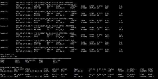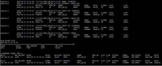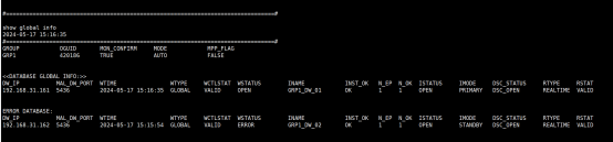 2)监视器上执行show global info显示所有组的全局信息