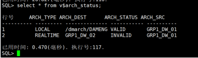主库上查询归档状态,实时归档仍然是INVALID。