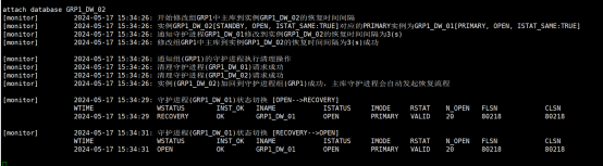 在监视器执行attach database GRP1_DM_02,将备库重新加入集群,归档状态正常。