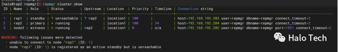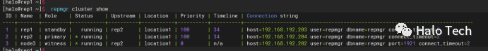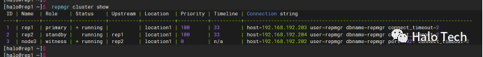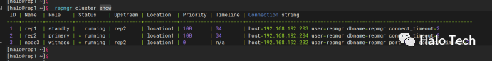 repmgr cluster show | 查看集群中已注册的节点基本信息与状态 |