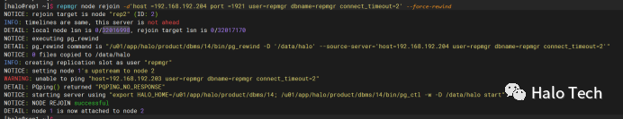 repmgr node rejoin | 重新加入一个失效节点到集群 |