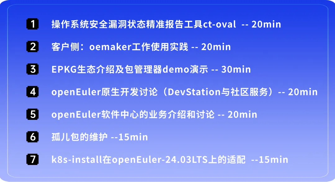 本专题将重点讨论openEuler本地开发环境、加包与更新维护、社区开发与协作基础设施、社区构建测试服务等话题。