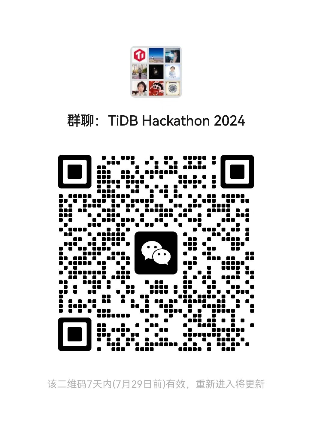 如二维码过期,请添加 TiDB Robot 微信(tidbai)邀您进 TiDB Hackathon 2024 活动微信群!