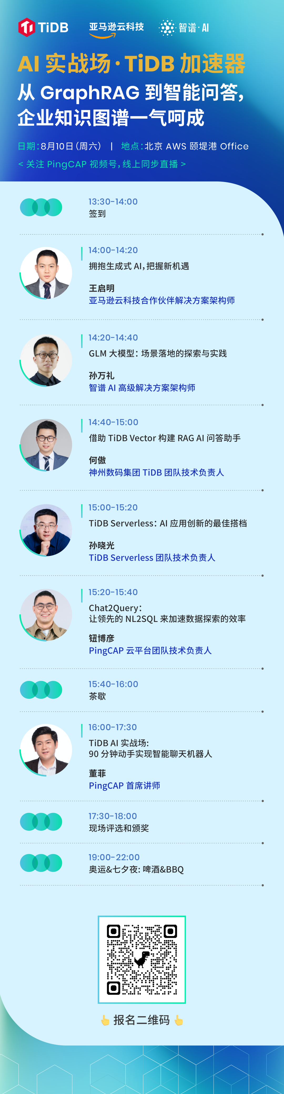 报名线下参与活动:https://forms.pingcap.com/f/TiDB-AI-Workshop