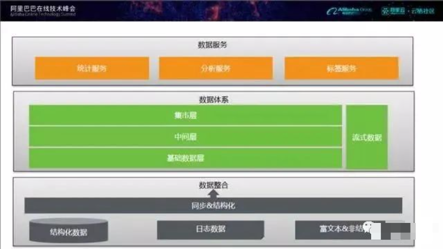 在上下三层的结构的右侧,我们增加了流式数据,将其添加成数据体系的一部分。这是因为当前的数据应用方向会越来越关注数据的时效性,越实时的数据价值度越高。