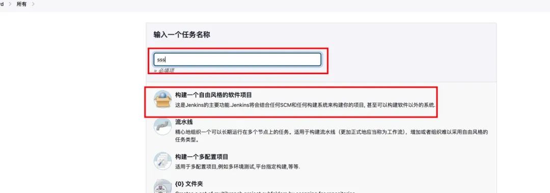 点击【新建任务】,点击构建一个自由风格的软件项目,