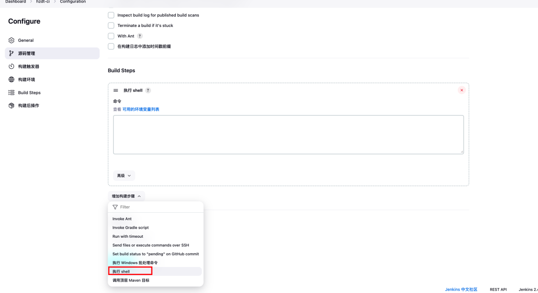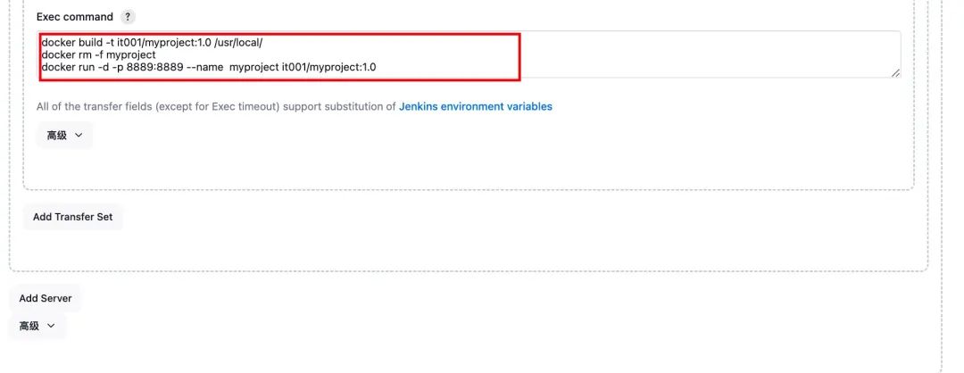 因为我们项目和jenkins在同一台服务器,所以我们用shell脚本运行项目,原理既是通过dockerfile 打包镜像,然后docker运行即可。