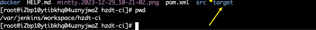 cd var/jenkins/workspace执行,ll命令:即可查看是否编译生成了target目录
