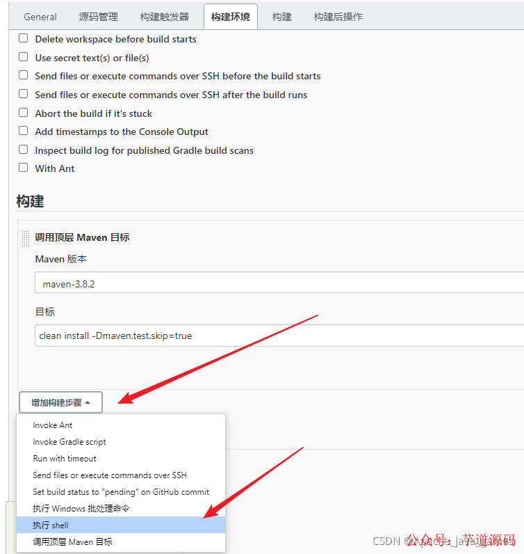 点击【构建触发器】–【构建】–【增加构建步骤】–【调用顶层Maven目标】–【填写配置】–【保存】