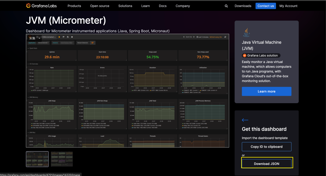 访问https://grafana.com/grafana/dashboards/4701-jvm-micrometer/,并下载
