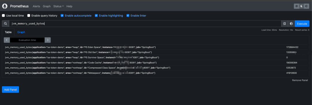 端口,查看是否能查询到业务系统指标,比如jvm_memory_used_bytes