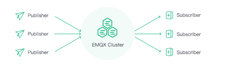 EMQX 分布式集群的基本功能是转发和发布消息到订阅者,如下图所示。