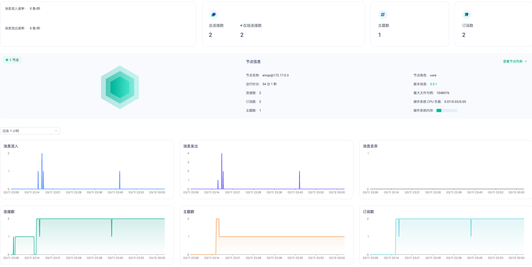 EMQX 是一款开源的大规模分布式 MQTT 消息服务器,功能丰富,专为物联网和实时通信应用而设计。EMQX 5.0 单集群支持 MQTT 并发连接数高达 1 亿条,单服务器的传输与处理吞吐量可达每秒百万级 MQTT 消息,同时保证毫秒级的低时延。
