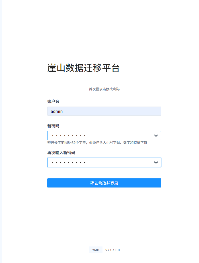 # 从root用户切换至ymp用户# su - ymp# 切换至YMP安装目录$ cd home/ymp/$ unzip yashan-migrate-platform-v23.2.1.0-linux-x86-64.zip