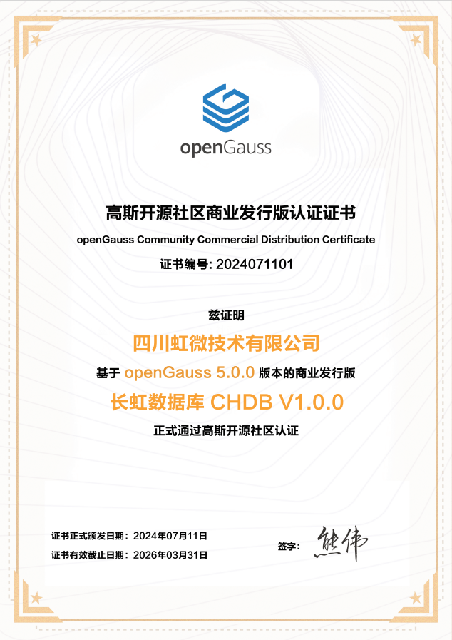 2024年上半年,云大中心与高斯开源社区建立了合作关系,积极参与openGauss开源生态建设,全面拥抱openGauss社区,共同推进建设信创基础软件,打造差异化的数据库产品,社区也将为长虹数据库提供核心技术的指导和重大问题兜底,双方共享开源成果,共建产业生态。
