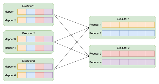 AQE 中 Local Shuffle Read 可以将参与 Join 的小表直接 Broadcast,但由于已经执行了 Shuffle Write,所以需要读取 shuffle write 数据;即每个 reduce 直接读取一个 map 数据文件作为新的 partition。