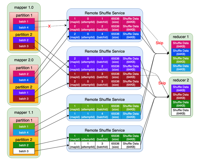 读时根据 MapId 和 AttemptId 和 BatchId 进行过滤