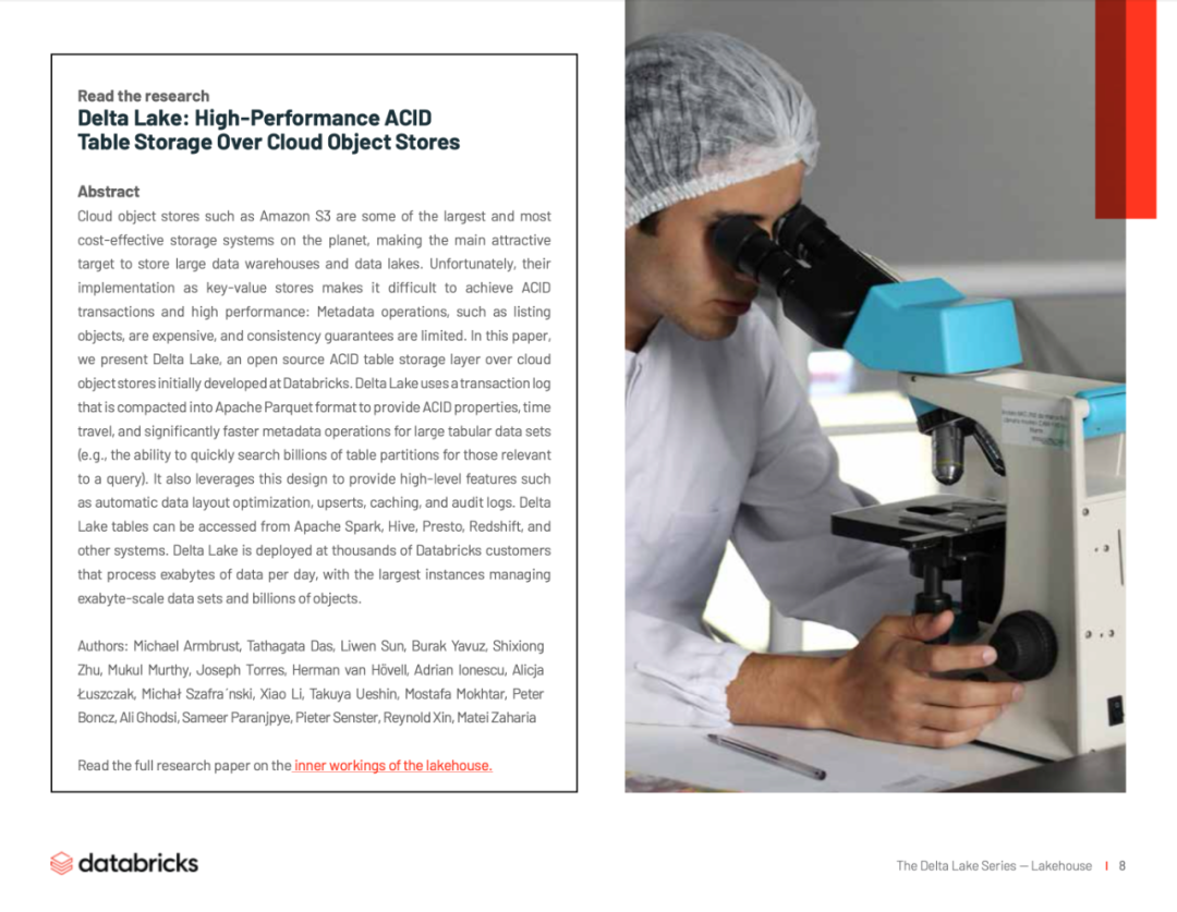 阅读以下研究 Delta Lake:基于云对象存储的高性能 ACID 表存储