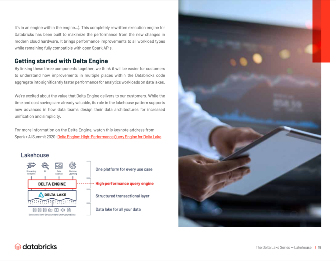 我们对 Delta Engine 为客户带来的价值感到兴奋。它在时间和成本的节约方面具有很大价值。更重要的是在 Lakehouse 模式中,它支持数据团队设计数据体系结构以提高统一性和简化性,并取得很多新进展。