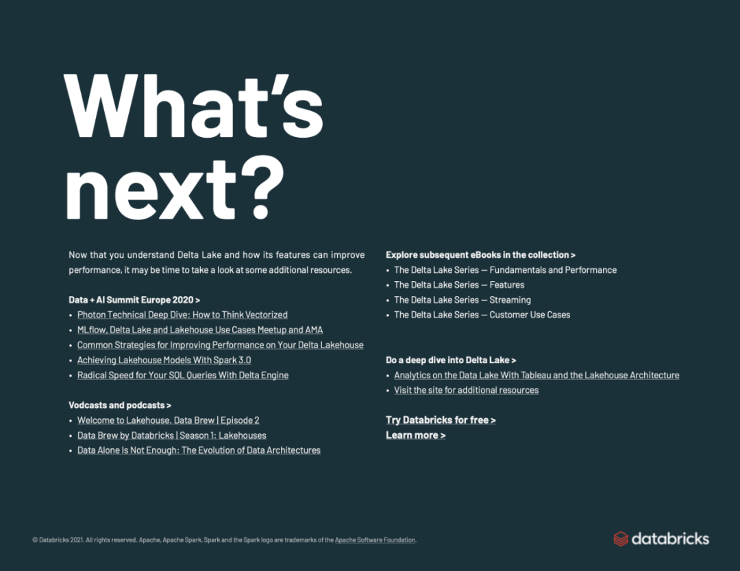 通过将这三个组件链接在一起,客户将更容易理解 Databricks 是如何将多个部分的代码聚合在一起进行改进,从而大大提高在数据湖上进行分析的工作负载的性能。
