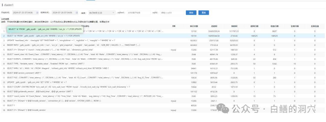因为insight的TOP SQL和慢SQL接口并没有开放,TOP SQL和慢SQL的采集目前还是采用传统的方式,不过还好,基于以往的经验,我们已经能够较为准确地采集到这些SQL了。