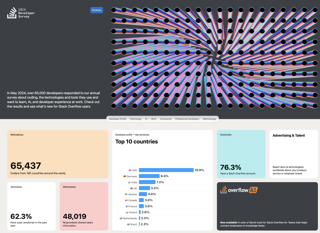 2024 年 StackOverflow 全球开发者调研结果[1]已经新鲜出炉, 来自 185 个国家与地区的 6 万名开发者给出了高质量的问卷反馈。