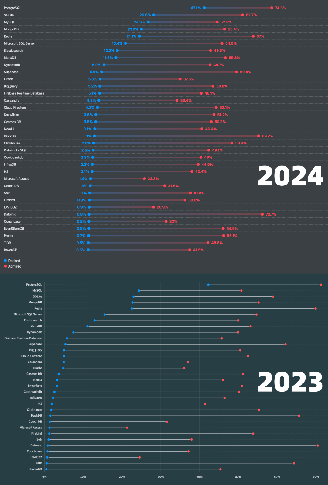 数据库之间的用户流动关系: https://survey.stackoverflow.co/2024/technology#3-databases