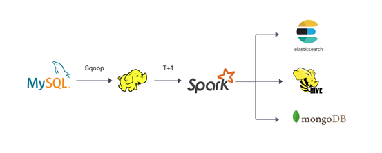 在基智科技目前的离线计算任务中,大部分数据源都是来自于业务 DB(MySQL) 。业务 DB 数据接入的准确性、稳定性和及时性,决定着下游整个离线计算 pipeline 的准确性和及时性。最初我们在 ECS 上搭建了自己的 Hadoop 集群,每天使用 Sqoop 同步 MySQL 数据,再经由 Spark ETL 任务,落表写入 Hive ,ES,MongoDB 、MySQL ,通过调用 Service API 做页签的展示。