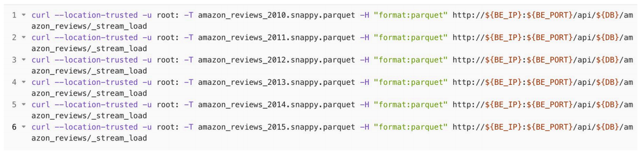 3.下载数据集,数据集为 Parquet 格式,并经过 Snappy 压缩,总大小约为37GB;下载完成后,分别执行以下命令,导入数据集;