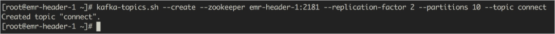 kafka-topics.sh --create --zookeeper emr-header-1:2181 --replication-factor 2 --partitions 10 --topic connect