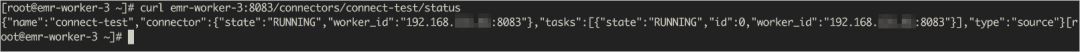 以root用户运行如下命令查看本例创建的Kafka Connect(本例为connect-test)的状态。