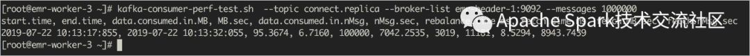 kafka-consumer-perf-test.sh --topic connect.replica --broker-list emr-header-1:9092 --messages 100000
